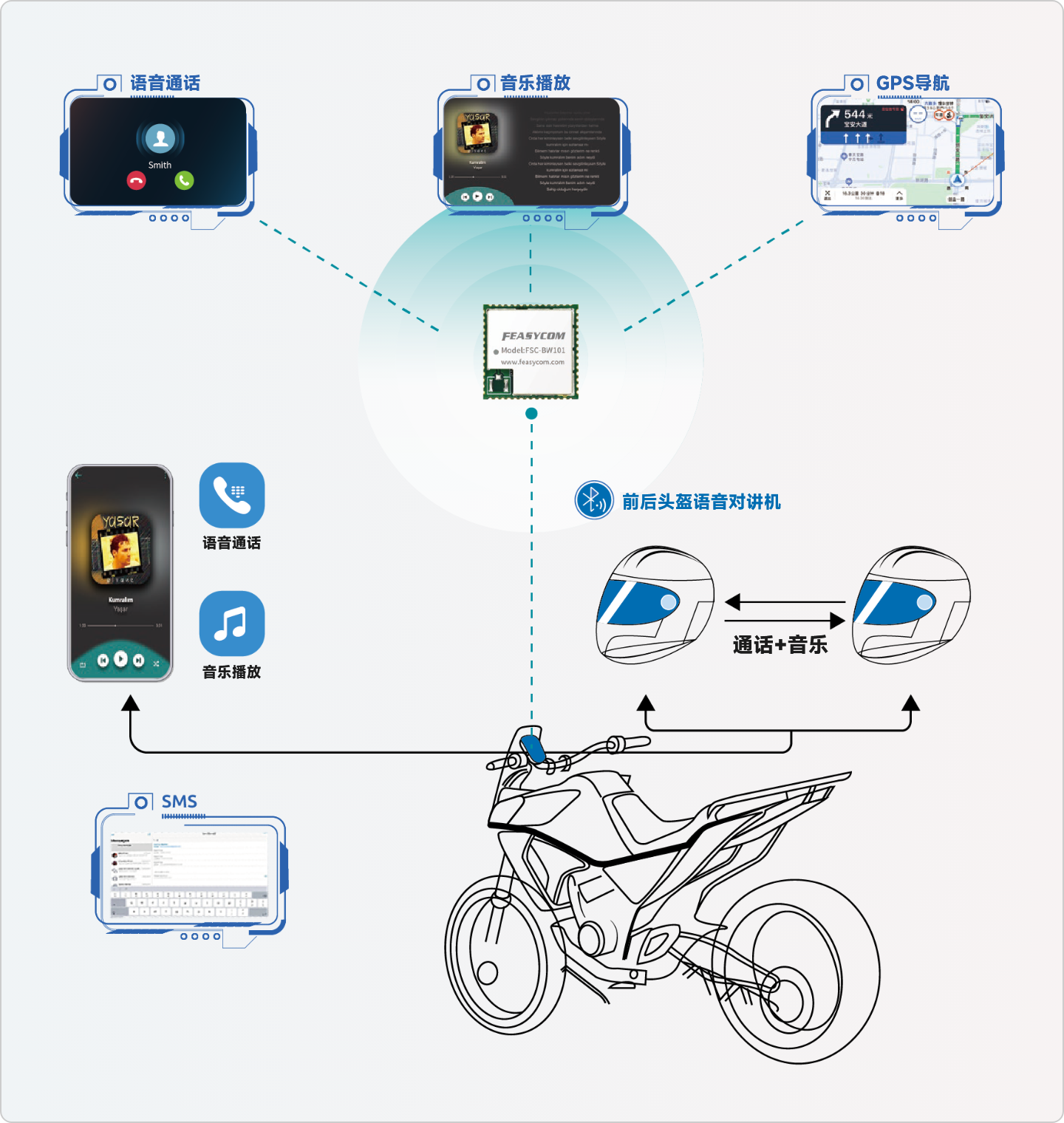 很多应用中,蓝牙通信以一对一的方式进行,但是一对一的连接已经难以满足两轮车用户日益增长的智慧物联需求,这些应用需要多个蓝牙连接。为更好满足两轮车市场需求,飞易通推出了更便捷、更安全、易开发的蓝牙多连接应用解决方案。